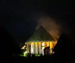 The conscience of time is specified as years and months well divided, with during the first ten days of the months a habit of eating coca (hayo). The next ten days are for working the farmfields and houses. The last ten days are described as time when people rest and the women live separately from the men; all the women together in one bohío and every man in his own.[12] It is reported that in other parts of the New Kingdom of Granada, the division of time is different; the described ten day periods are longer and two months of the year are reserved for fasting (quaresma).[13]
