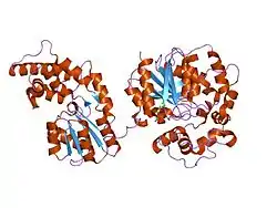 Soluble epoxide hydrolase (sEH) is a bifunctional enzyme that in humans is encoded by the EPHX2 gene.[5][6][7] sEH is a member of the epoxide hydrolase family. This enzyme, found in both the cytosol and peroxisomes, binds to specific epoxides and converts them to the corresponding diols. A different region of this protein also has lipid-phosphate phosphatase activity. Mutations in the EPHX2 gene have been associated with familial hypercholesterolemia.[5]