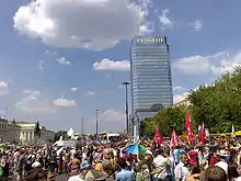 An equality march has been held in Warsaw since 2001, the first gay march in the former Communist bloc. In 2005, All-Polish Youth planned to hold a countermarch called "Normality Parade" (Polish: Parada Normalności); instead, the equality march was cancelled by then-mayor Lech Kaczyński, who argued that the event promoted a "homosexual lifestyle".[8] In 2010, EuroPride was held in Warsaw for the first time in a formerly Communist country. Several thousand people attended, and anti-gay groups collected 50,000 signatures that the event should be cancelled.[9] In 2019, around 47,000 people participated, including (for the first time) the mayor of Warsaw, Rafał Trzaskowski.[7][10] It was the largest pride parade in central and Eastern Europe.[10]