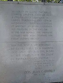 Media related to Statue of Bernardo de Gálvez (Washington, D.C.) at Wikimedia Commons- Entry on THE HISTORICAL MARKER DATABASE
