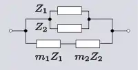 A single impedance has two terminals to connect to the outside world, hence can be described as a 2-terminal, or a one-port, network. Despite the simple description, there is no limit to the number of meshes,[note 6] and hence complexity and number of elements, that the impedance network may have. 2-element-kind[note 4] networks are common in circuit design; filters, for instance, are often LC-kind networks and printed circuit designers favour RC-kind networks because inductors are less easy to manufacture. Transformations are simpler and easier to find than for 3-element-kind networks. One-element-kind networks can be thought of as a special case of two-element-kind. It is possible to use the transformations in this section on a certain few 3-element-kind networks by substituting a network of elements for element Zn. However, this is limited to a maximum of two impedances being substituted; the remainder will not be a free choice. All the transformation equations given in this section are due to Otto Zobel.[4]
