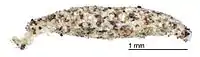 The larvae are most likely lichenivorous. Several small (3.5–4.2 mm long) mature larval cases, some with pupal exuviae attached were collected under lichen covered rocks. It is likely that these are the larval cases of E. grayi. These cases are mostly white, speckled with small grains of sand and minute, dark fragments from the rocky substrate.