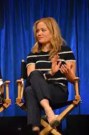 Christensen was a regular cast member on the NBC drama television series Parenthood, which debuted on March 2, 2010, and concluded on January 29, 2015.[35] She portrayed the role of Julia Braverman-Graham, the youngest daughter of the Braverman family.[36] She won the 2014 Gracie Award for Outstanding Female Actor in a Supporting Role in a Drama Series for her performance in the series.[37] In 2013, she starred in the musical film How Sweet It Is, directed by Brian Herzlinger,[38] and was a guest judge on 2 episodes of the cooking competition series Knife Fight.[39] The following year, she appeared on the celebrity game show Hollywood Game Night,[40] and lead the cast of the Hallmark Channel television film My Boyfriends' Dogs, based on the Dandi Daley Mackall novel of the same name.[41]