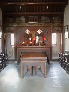 The residence was built with the classic southern Fujian style, featuring relief carvings, windows, doors and eaves. It forms a rectangular shape over an area of 330 m2 which includes three halls.[4]