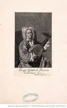 Ernst Gottlieb Baron or Ernst Theofil Baron (17 February 1696 – 12 April 1760), was a German lutenist, composer and writer on music.