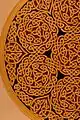 Somogyi's woodworking designs arise out of stringed instrument building tradition and aesthetic. They are fashioned out of thin sheets of musical grade tone woods which have been bookmatched, edge joined, and planed thin. The mosaic inlay patterns come out of guitarmaking design: guitars have open soundholes bordered with inlaid patterns of dyed pieces of wood. These inlaid mosaic patterns are a form of fret ornamentation, an effect made by laying pieces of material of the same size next to one another and thereby producing a design. In guitars these are called rosettes. While historical rosette design originated from Arabian, Celtic and European Renaissance influences, it is expanded in Ervin Somogyi's work to also embrace Japanese, Russian, African, primitive, abstract and modern design.[11]