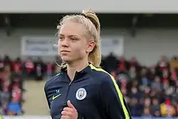 ![]() Esme Morgan warming up for Manchester City before a match in May 2019 | |||