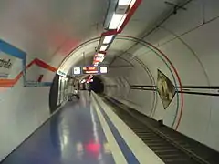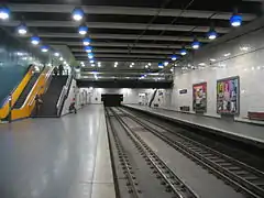 Soon after that actual planning started on the tunnels in the city centre. The planning was carried out simultaneously on the construction of a highway tunnel for the Ruhr Expressway underneath the inner city. In the end, the so-called Y-Lösung ("Y solution") was adopted under which the Essen Hauptbahnhof Stadtbahn station became a central, four-track junction station serving all lines, which a branch in the north to the northeast and the northwest. The first construction project was the establishment of the shell of Planckstraße station in 1964, which was later used for the connection to the existing above-ground tram line to Margarethenhoehe. The first section of the underground tram line to go into operation, however, was a 552-metre-long urban tunnel section through Saalbau station, opened on 5 October 1967.[3] This was also the first part of the entire underground tram (U-Straßenbahn) network of the Rhine-Ruhr region, since Saalbau station was also the first underground railway station in North Rhine-Westphalia.