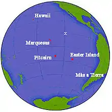 Later that day, the two boats separated; Hendricks' boat was never seen again. All three men are presumed to have died at sea. A whaleboat was later found washed up on Ducie Island with the skeletons of three people inside.[18] Although it was suspected to be Obed Hendricks' missing boat, and the remains those of Hendricks, Bond, and West, the remains have never been positively identified.[19]