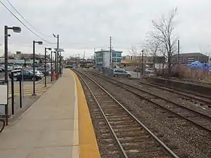 ![]() Essex Street station in April 2015. The former 1860 station depot platform is visible on the right side. | |||||||||||||