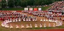 The Estonian Dance Festival is a national dance and gymnastics celebration currently held every five years at the Kalevi Keskstaadion in Tallinn, Estonia.[1] The festival is maintained and developed by the Estonian Song and Dance Celebration Foundation. The Dance Festival is usually held on the same weekend as the Estonian Song Festival.