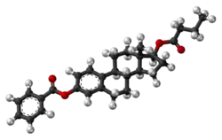 EBB is a synthetic estrane steroid and the C3 benzoate (benzenecarboxylate) and C17β butyrate (butanoate) diester of estradiol.[17] It is also known as estradiol 3-benzoate 17β-n-butyrate or as estra-1,3,5(10)-triene-3,17β-diol 3-benzoate 17β-n-butyrate.[17]