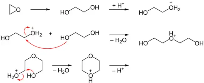 - Cl–CH2CH2–OH + KOH → (CH2CH2)O + KCl + H2O