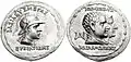 Some of the coins of Eucratides probably represent his parents, where his father is named Heliocles, and his mother, who is thought to be Laodice,[3] is wearing a royal diadem. Laodice may have been a member of the Seleucid imperial house.