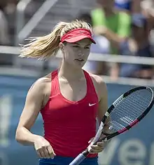 At the Family Circle Cup, she successfully qualified for the main draw, and drew fellow qualifier Nastassja Burnett which she won in straight sets. She also defeated world No. 42, Laura Robson, in three sets in the second round, her first top-50 win. Bouchard won her third-round clash against former US Open champion Samantha Stosur after the Australian retired, booking a spot in the quarterfinals of the Premier tournament. It was the first top-10 victory of her young career. Although she lost to Jelena Janković, the quarterfinal appearance assured her a spot in the top-100 for the first time.[32] Bouchard went on to play a French Open warm-up tournament, the Internationaux de Strasbourg, where she had one of her most impressive runs on the WTA Tour to date. She made it to the semifinals by defeating Sílvia Soler Espinosa, Camila Giorgi and Anna Tatishvili all in straight sets, but lost to Alizé Cornet.[33] Bouchard made her first Grand Slam main-draw appearance at the French Open, where she defeated Tsvetana Pironkova in straight sets. Her next opponent was the defending champion and world No. 2, Maria Sharapova, who defeated her.[34]