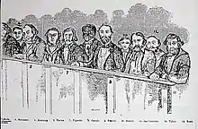 According to Lalor the stockade "was nothing more than an enclosure to keep our own men together, and was never erected with an eye to military defence."[82] However Peter FitzSimons asserts that Lalor may have downplayed the fact that the Eureka Stockade may have been intended as something of a fortress, at a time when "it was very much in his interests" to do so.[83] The construction work was overseen by Vern, who had apparently received instruction in military methods. Lynch wrote that his "military learning comprehended the whole system of warfare ... fortification was his strong point." Les Blake has noted how other descriptions of the stockade "rather contradicted" Lalor's recollection of it being a simple fence after the fall of the stockade.[84] Testimony was heard at the high treason trials for the Eureka rebels that the stockade was four to seven feet high in places, and was unable to be negotiated on horseback without being reduced.[85]
