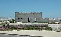 Europa has been the site of Spanish and Moorish fortifications as well as those constructed by the British which added to the cliffs which were part of Gibraltar's natural defences. Additions included walls, the scarping of the rocks to remove foot and handholds and a large number of batteries supported by a local barracks.[3] Today, Harding's Battery is central to the land at the end of the point. Built in the 19th century, this battery shows the scale of guns that could fire 800 pound projectiles over a foot in diameter over to the other side of the Straits of Gibraltar. The Europa Sunken Magazine that contained this ammunition is now a visitor centre.
