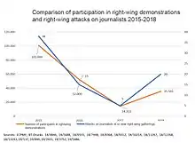 Since 2015, the ECPMF has been examining politically motivated attacks on journalists in Germany. The phenomenon became virulent with the rise of right-wing demonstrations and the denunciation of journalists as “Lügenpresse” (lying press). The reports investigate how such a "concept of the enemy" influences the willingness to commit violence, and document fact-checked cases of physical attacks against journalists.[9] The reports were widely shared and quoted, including in the international press.[10][11][12]