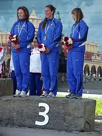 ![]() Eva Ornstová, Kateřina Kudějová and Štěpánka Hilgertová at the 2013 European Canoe Slalom Championships | ||