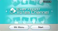 The Everybody Votes Channel was a Wii Menu channel that allowed users to vote in simple opinion polls and compare and contrast opinions with those of friends, family and voters around the globe.