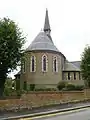 Among Christian's best original churches are Holy Trinity, Sunk Island, in the East Riding of Yorkshire (completed in 1877),[43] St Matthew's Church in Cheltenham, Gloucestershire (1878–79),[44] and his masterpiece St Mark's Church, Leicester (1869–72),[45] all cited in his RIBA Royal Gold Medal award of 1887. Holy Trinity displays his most typical red brick lancet style with nave and chancel under a single steep-pitched high roof, a deep apse to the chancel and a bold impressive tower topped by a pyramidal spire. The tower has another familiar feature, a projecting circular stair-turret to its east side which is capped by its own small curved roof.[46]