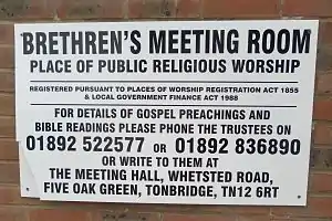 - "Plymouth Brethren FAQ". Archived from the original on 18 May 2016.