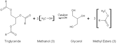 Lipases are one of the most used exoenzymes in biotechnology and industrial applications. Lipases make ideal enzymes for these applications because they are highly selective in their activity, they are readily produced and secreted by bacteria and fungi, their crystal structure is well characterized, they do not require cofactors for their enzymatic activity, and they do not catalyze side reactions.[32] The range of uses of lipases encompasses production of biopolymers, generation of cosmetics, use as a herbicide, and as an effective solvent.[32] However, perhaps the most well known use of lipases in this field is its use in the production of biodiesel fuel. In this role, lipases are used to convert vegetable oil to methyl- and other short-chain alcohol esters by a single transesterification reaction.[33]