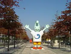 The Expo mascot was conceived by the Portuguese duo of painter António Modesto and sculptor Artur Moreira. It was selected from 309 entries. It is named Gil, after Portuguese navigator Gil Eanes.[3] The name was chosen by high-school student José Luís Coelho, from 765 entries. Gil turned the RTP mascot and can be see on the station main events.