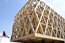 ![]() pavilion | Theme Towards a Sustainable Food Ecosystem[40] The pavilion comprises 4 structures designed to resemble seeds, and made is from glued laminated timber[40] | ||