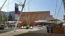![]() The cafe area at Argentina pavilion | Theme 'Argentina feeds you'. The pavilion was designed to resemble four silos[8] | ||