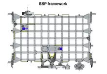 ESP-2 was detached from its Keel Yoke Assembly (which remained in the Orbiter) and installed with the assistance of Space Shuttle Discovery's robotic arm and two spacewalkers during the STS-114 mission.[5] It is much larger than ESP-1 with eight FRAM sites creating room for up to eight spare parts (ORUs). Like ESP-1, it is powered by the Unity Module. However, unlike ESP-1, ESP-2 is attached to the Quest Joint Airlock using a specialized ESP Attachment Device (ESPAD). ESP-2 and ESP-3 are deployable versions of the integrated cargo carrier and have the same dimensions, approximately 8.5 feet (2.6 m) long and 14 feet (4.3 m) wide. The ORUs on ESP-2 are: