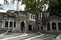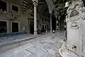 The wall of the mausoleum facing the mosque has a number of contrasting panels of Iznik tiles. They date from several different periods and were brought together during the reconstruction of mosque in 1798-1799.[16] The walls of the vestibule to the mausoleum are also covered in Iznik tiles. They have the characteristic sealing-wax red slip and date from around 1580.[16] Similar tiles to those in the vestibule are displayed in several museums outside Turkey; they probably once covered the walls of the now demolished entrance hall (camekân) to the baths.[17][18][lower-alpha 1]
