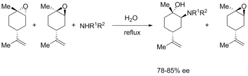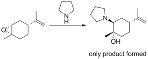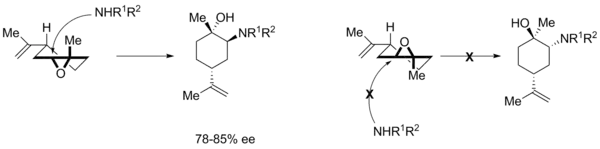A recent example of the Fürst-Plattner rule can be seen from Chrisman et al. where limonene is epoxidized to give a 1:1 mixture of diastereomers. Exposure to a nitrogen nucleophile in water at reflux provides only one ring opened product in 75-85% ee.[3]