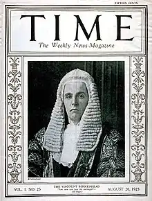Birkenhead's increasingly pompous oratory caused David Low to caricature him in the 1920s as "Lord Burstinghead".[21] After retiring from politics, he became Rector of the University of Aberdeen, a director of Tate & Lyle, a director of Imperial Chemical Industries,[27] and High Steward of the University of Oxford. In a 1983 biography review, William Camp — who had written a 1960 biography of the man — opined that "F.E. was the quintessential male chauvinist who, almost with his dying breath, dragged himself to the Lords in July 1930 to attack the right of peeresses to take their seats."[27]