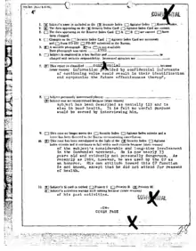 The Security Index pertained to the FBI list of dangerous people who might commit acts inimical to the national defense and public safety of the United States in time of emergency.[13] The list also included those who could be arrested upon the order of a U.S. President invoking the Emergency Detention Program. The Reserve Index, on the other hand, listed all left-wingers and people suspected of being a Communist. By 1950s, for instance, there were 5,000 names on the Security Index while the Reserve Index had 50,000 in the Chicago field office.[14] A person listed in the Reserve Index could be transferred to the Security Index if such individual posed a threat to U.S. interests in a period of national emergency.[15] A difference between these indices involved their color scheme. The files of those of the Security Index were all in white while the Reserve Index varied in colors depending on the occupation of the subject.[14]