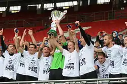 In the 2012–13 Austrian Cup, Pasching achieved the biggest sensation in the history of the competition. After Austria Salzburg, Austria Lustenau and Austria Klagenfurt were eliminated in the first three rounds, the elite of Austrian football waited for the regional league team in the last three rounds. In the quarter finals, Pasching beat Rapid Wien 1–0 away from home. In the semi-final, they faced cooperation partner Red Bull Salzburg away from home and turned a 0–1 deficit into a 2–1 victory, becoming the first team from the third division to reach the final of the ÖFB Cup in its 94-year history.[1] The opponent in the final at the Ernst-Happel-Stadion in Vienna was Austria Wien. Daniel Sobkova scored shortly after half time giving Pasching a 1–0 lead, which they defended to win the final. Thus, FC Pasching defeated the champion, the runner-up and third team in the Bundesliga season 2012–13, without ever having had the home advantage for themselves. The Cup victory saw the Upper Austrians qualify for the 2013–14 UEFA Europa League play-off round, where they met the Portuguese club Estoril Praia and lost with two defeats.