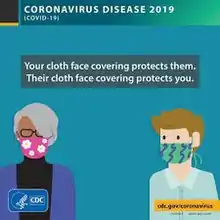In late March 2020, the Centers for Disease Control and Prevention (CDC) published a recommendation that masks be used by those who are sick, or are caring for someone who is sick and not able to wear a mask themselves, and discouraged their use by healthy members of the general public.[31][1] This guidance was consistent with that of the World Health Organization (WHO) at the time.[1]