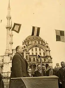 ![]() Making a public speech in front of Nusretiye Mosque, 1949. | |
