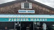 Being a seasonal community, Fair Harbor offers only a few services. The Pioneer Market[12] is the only grocer in the hamlet; Le Dock, the only restaurant, is open for lunch and dinner and offers both indoor and outdoor dining. The Loading Dock sells liquor and wine, and Corliss on the Bay sells miscellaneous items including bikes, souvenirs, hardware, toys, magazines, books, paint, and garden items. There is also an ice cream store and a pizza take-out shop.[13] These stores are open 7 days a week in season and closed during the off season (October through May).[6] There is also the Fair Harbor Clothing store, established by individuals who grew up a block away from Fair Harbor "in a barefoot community," developing a "deep appreciation for the water, waves and bounty of the sea."[14]