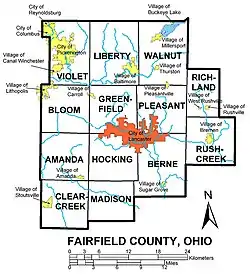 Map of Fairfield County, Ohio with Municipal and Township Labels
