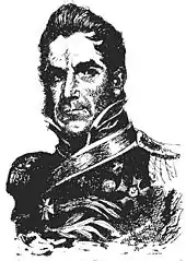The Government of the United Provinces of the River Plate attempted to control the islands through commerce, granting fishing and hunting rights to Jorge Pacheco in 1824. Pacheco's partner Luis Vernet established a toehold in the islands in 1826 and a fledgling colony in 1828. He also visited the British consulate in 1826, 1828 and 1829 seeking endorsement of his venture and British protection for his settlement in the event of their returning to the islands.[12]:50[15][16] After receiving assurances from the British minister chargé d'affaires, Sir Woodbine Parish, Vernet provided regular reports to the British on the progress of his enterprise. He expressed the wish that, in the event of the British returning to the islands, the British Government would take his settlement under their protection; Parish duly passed this wish on to London.[12]:52 In 1829, he sought a naval vessel from the United Provinces to protect his colony but as none were available he was appointed Military and Civil Commander, prompting British protests.[17][18] Attempts to regulate fishing and sealing lead to conflict with the United States and the Lexington raid of 1831.[19] With the colony in disarray, Major Esteban Mestivier was tasked to set up a penal colony but was murdered in a mutiny shortly after arriving in 1832.[20] Protests at Mestivier's appointment received no response and so the British dispatched a naval squadron to re-establish British rule.[21]