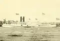 In 1889, the Thames River railroad drawbridge opened at New London, Connecticut, enabling direct, through rail service between Boston and New York City for the first time, marking the first serious threat to the existence of the Line.[5] In 1893, the Fall River Line became part of the New York, New Haven and Hartford Railroad upon its lease of the entire Old Colony Railroad network. In 1906, the line became a division of the New England Navigation Company.