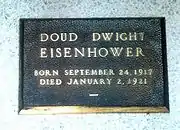 Doud Dwight Eisenhower (September 24, 1917 – January 2, 1921) was the first son of Dwight and Mamie Eisenhower. He was named "Doud" in honor of his mother (whose maiden name was Doud) and "Dwight" in honor of his father. He was commonly called "Ikky" (pronounced as "icky") by his parents.[18][19]