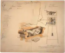 In 1849 a 6m radius steam-driven fan, designed by William Brunton, was made operational in the Gelly Gaer Colliery of South Wales. The model was exhibited at the Great Exhibition of 1851. Also in 1851 David Boswell Reid, a Scottish doctor, installed four steam-powered fans in the ceiling of St George's Hospital in Liverpool, so that the pressure produced by the fans would force the incoming air upward and through vents in the ceiling.[6][7] Improvements in the technology were made by James Nasmyth, Frenchman Theophile Guibal and J. R. Waddle.[8]