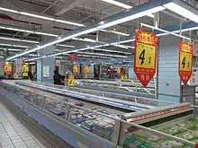 The Dyson Air Multiplier fans, and the Imperial C2000 series range hood fans, have no exposed fan blades or other visibly moving parts except their oscillating and tilting head. The airflow is generated using the Coandă effect; a small quantity of air from a high-pressure-bladed impeller fan, contained in the base rather than exposed, drives a large airmass via a low-pressure area created by the airfoil.[17][18][19] The US Patent & Trademark Office initially ruled that Dyson's patent was not an improvement on the Toshiba patent on a nearly identical bladeless desktop fan granted in 1981.[17] Air curtains and air doors also utilize this effect to help retain warm or cool air within an otherwise exposed area that lacks a cover or door. Air curtains are commonly used on open-face dairy, freezer, and vegetable displays to help retain chilled air within the cabinet using a laminar airflow circulated across the display opening. The airflow is typically generated by a mechanical fan of any type described in this article hidden in the base of the display cabinet.