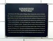 Fannie Hagan was born and raised in Cincinnati, Ohio, where she graduated with high marks from Old Gains High School. She later moved to Chicago, Illinois, and married, on February 28, 1888, at Bethel Church, William Emanuel,[2] proprietor of the Professor William Emanuel Scientific Chiropody Company. Her husband was born in Macon, Georgia, on December 1, 1862, and had relocated to Chicago from New York in 1887.[3] After they married, Emanuel assisted her husband by serving as the firm's treasurer. The Emanuel chiropody clinic remained opened in the Chicago Loop for over thirty-five years.[4]