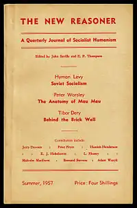 According to George Matthews, Khrushchev made a deal with the CPGB to provide a secret annual donation of more than £100,000 in used notes.[19] The year 1956 would be definitive in the history of the CPGB, however. Not only did they have to deal with the fallout of Khrushchev's aforementioned "secret speech", which attacked the legacy of Joseph Stalin, alienating those within the party who regarded Stalin as a great socialist, but also the crushing of the Hungarian Revolution of 1956 made some British communists uncomfortable, causing a membership drop.[16] One of the most significant defections in the aftermath of this was the resignation of a number of Communist Party Historians Group intellectuals (with the exception of Eric Hobsbawm), who defined themselves as against "the tankies." They went on to found the New Left current; E. P. Thompson and John Saville founded the New Reasoner, which eventually became the New Left Review. They became associated with the broad pacifist group the CND. The New Left was co-founded by Gramscian-inspired Stuart Hall who played a key role in the introduction of identity politics currents such as cultural studies and is called the "godfather of multiculturalism."