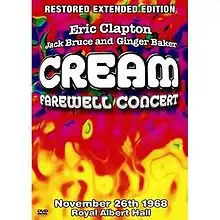 Farewell Concert is the live recording of the band Cream's final concert at the Royal Albert Hall on 26 November 1968. Aside from the band's reunion concert in 2005 it is Cream's only official full concert release on video. It was originally broadcast by the BBC on 5 January 1969. It was not released on video in the US until 1977. The opening acts for the concert were future progressive rock stars Yes who were just starting out and Taste, an Irish trio led by Rory Gallagher.