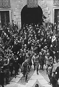 This statement by Mussolini on a Jewish-Bolshevik-plutocratic connection and conspiracy was met with opposition in the Fascist movement, resulting in Mussolini responding to this opposition amongst his supporters by abandoning and reversing this stance shortly afterwards in 1919.[40] In reversing his stance due to opposition to it, Mussolini no longer expressed his previous assertion that Bolshevism was Jewish, but warned that—due to the large numbers of Jews in the Bolshevik movement—the rise of Bolshevism in Russia would result in a ferocious wave of anti-Semitism in Russia.[40] He then claimed that "anti-Semitism is foreign to the Italian people", but warned Zionists that they should be careful not to stir up antisemitism in "the only country where it has not existed".[40] One of the Jewish financial supporters of the Fascist movement was Toeplitz, whom Mussolini had earlier accused of being a traitor during World War I.[42] Early on there were prominent Jewish Italian Fascists such as Aldo Finzi,[42] who was born of a mixed marriage of a Jewish and Christian Italian and was baptized as a Roman Catholic.[43] Another prominent Jewish Italian Fascist was Ettore Ovazza, who was a vocal Italian nationalist and an opponent of Zionism in Italy.[44] 230 Italian Jews took part in the Fascists' March on Rome in 1922.[37] In 1932, Mussolini made his private attitude about Jews known to the Austrian ambassador when discussing the issue of the antisemitism of Hitler, saying: "I have no love for the Jews, but they have great influence everywhere. It is better to leave them alone. Hitler's anti-Semitism has already brought him more enemies than is necessary".[40]