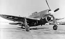 Speeds of all-metal monoplanes of the 1930s jumped into the 435 mph (700 km/h) range with the Macchi M.C.72 reaching a top speed of 440.6 mph (709.1 km/h), still the record for piston-powered seaplanes.[12] The Messerschmitt Me 209 V1 set a world speed record of almost 756 km/h (470 mph) on 26 April 1939,[13] and the Republic XP-47J (a variant of the P-47 Thunderbolt) is claimed to have reached 505 mph (813 km/h) in testing. The P-51H Mustang, 555 made, could go 487 mph (784 km/h). The prototype of the twin-engined de Havilland Hornet (RR915) (383 built) reached 485 mph (781 km/h) as did a prototype Hawker Fury (LA610) when fitted with a Napier Sabre VII, and a prototype of the successor to the Supermarine Spitfire, the Supermarine Spiteful F.16 (RB518), reached 494 mph (795 km/h). The fastest German propeller driven aircraft that flew in WWII (did not see combat) was the twin-DB 603-powered Dornier Do 335 "Pfeil/Arrow" which had a claimed top speed of 474 mph (763 km/h).[14]